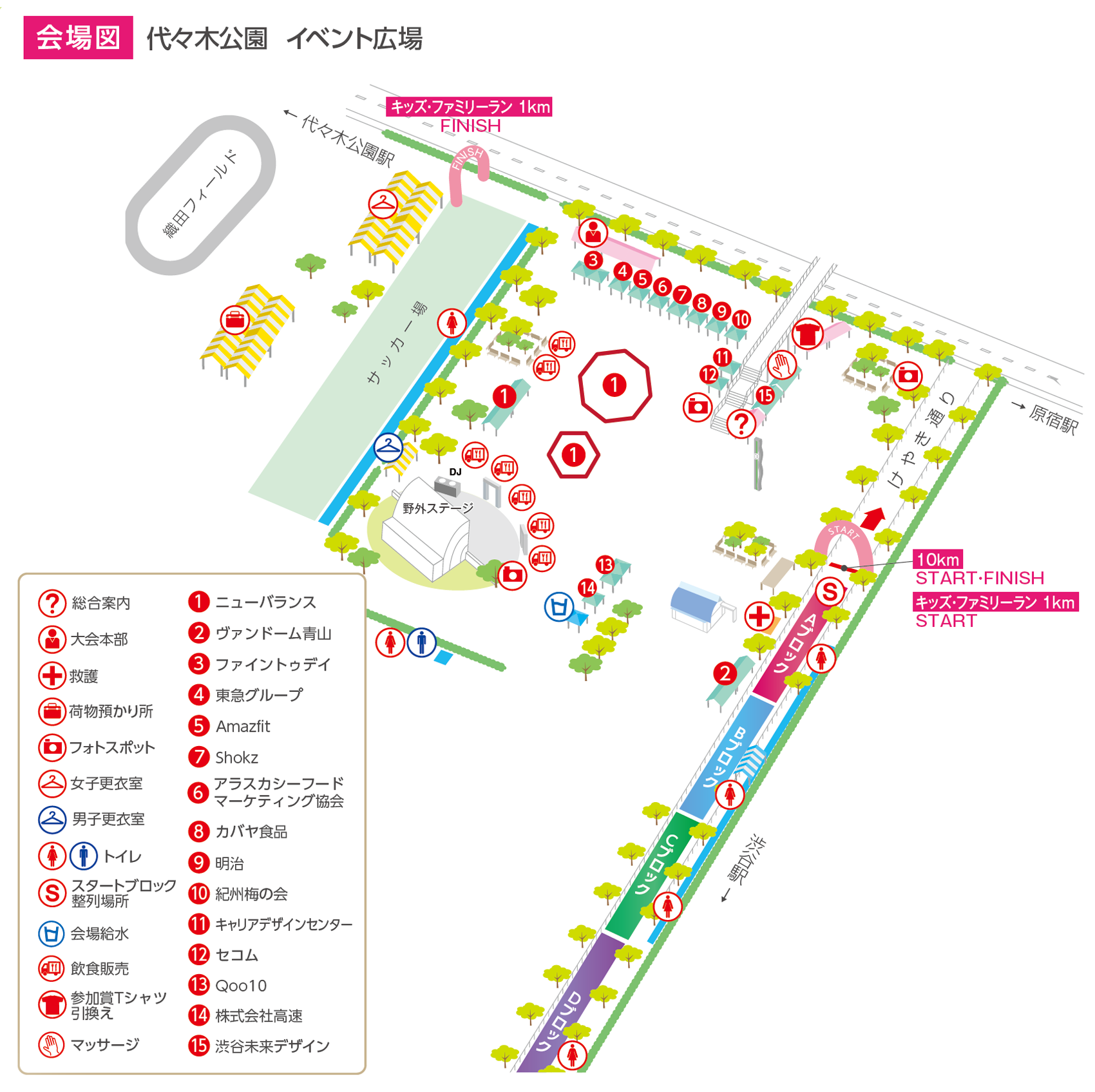 「渋谷・表参道WOMEN’S RUN」のメイン会場では、協賛各社による様々な出展ブースが並びます!