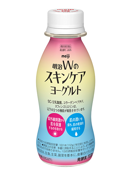 「明治Wのスキンケアヨーグルト」は、紫外線刺激から肌を保護するのを助ける&肌の潤いを保ち、肌の乾燥を緩和するというスキンケアにうれしい2つの機能が報告されている成分を配合したドリンクヨーグルトです。